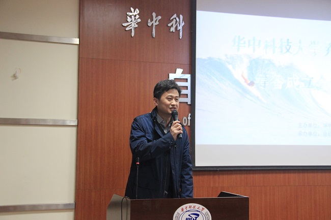 随后,各公司代表分别表达了他们对“弄潮社”成立和“CTF”大赛的支持。360企业安全集团湖北分区总经理魏雨露在会上展示了360在网络安全方面的实力,他表示,网络安全永无止境,希望更多地年轻人参与进来,360也将对后续的活动提供技术支持。华为技术有限公司校企合作总监刘树强调了创造力的重要性,对社团今后的发展报以非常高的期望,同时预祝“CTF”大赛圆满成功。深圳市讯方技术股份有限公司武汉区域执行经理陈震高度肯定了学校师生为“弄潮社”的成立所付出的努力,讯方公司重视“弄潮社”和“CTF”大赛,希望同学们积极与到活动中来,以赛促学,取得优异成绩。