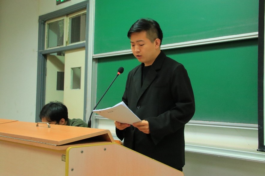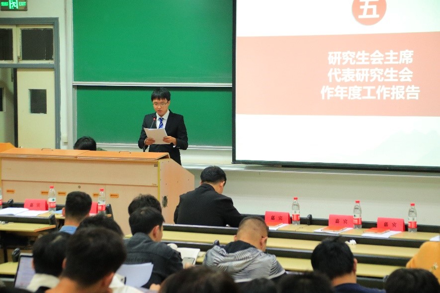 随后校研究生会代表王涵申宣读了贺信;院研究生会代表李一杰宣读《太阳成tyc7111cc集团第二次研究生代表大会代表资格审查报告》;院研究生会主席团郑尧中做《太阳成tyc7111cc集团研究生会2020-2021年度工作报告》,并经大会表决一致通过。