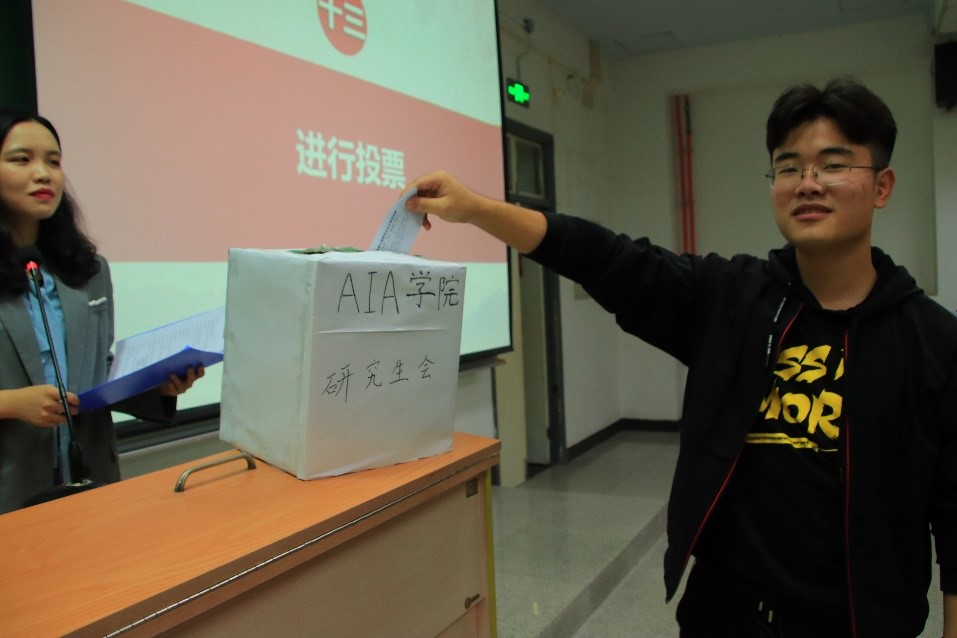4位主席团候选人在表决通过《研究生会主席团换届大会选举办法》后依次进行了竞选演讲,充分展现了自己对于学生工作的热情以及对于未来工作的展望。答辩结束后,现场发放选票,与会代表参与投票。