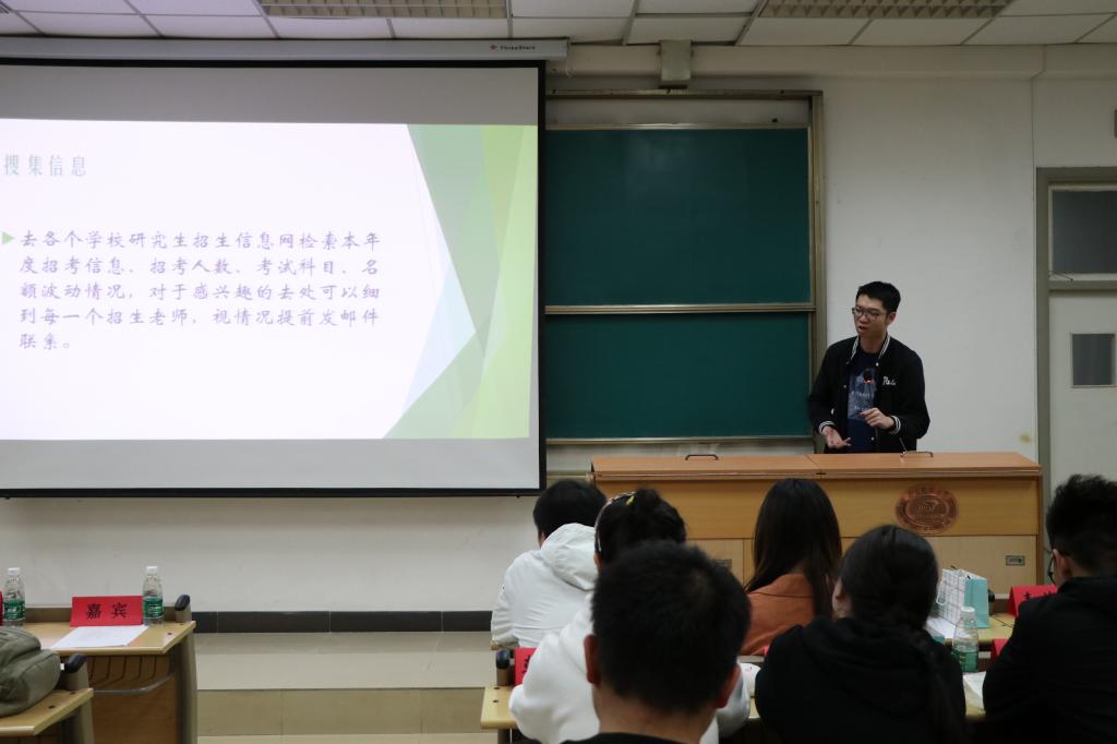 2019年4月13日、14日,我院2019年保研考研交流会于东九C201室顺利举行。在两天的交流会中,来自我院各个专业的16名优秀同学向大家分享了自己的保研或考研经验。