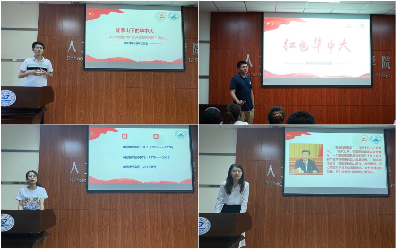 辅导员理论宣讲工作室的王泽昀、彭鹤翔、刘赵昊旻、赵爽等四位老师分别讲授了“喻家山下的华中大”、“红色华中大”、“学在华中大”、“科技报国华中大”为主题的校史故事,结合先进人物、典型故事、学科发展、科研攻关、空间变迁、时代特征等,从不同角度讲解不同时期华中大的发展历程,生动阐述校史背后的精神内涵,勉励青马班学员爱校荣校,赓续传承华中大精神,让青春梦和中国梦同频共振。