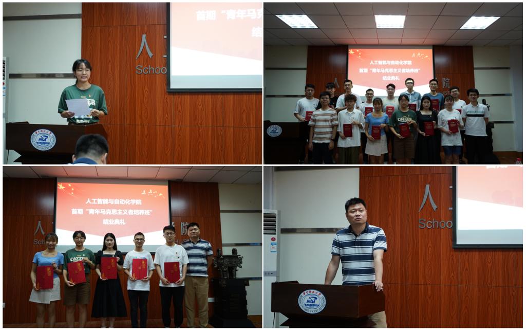 汪昭和王泽昀作为毕业生辅导员为学院颁发结业证书,梁浩伟为李兰等优秀学员颁发荣誉证书并进行了总结讲话。梁浩伟表示,作为院青马首期学员,大家应当做好表率,不仅要在青马班中学习、锻炼、提升,更要牢记青马学员身份,做马克思主义坚定的信仰者和重视的践行者,在青年学子中模范带头、发挥作用,结业不是结束,而是新的起点,希望大家发扬青马传统,继续迎接挑战、奋发有为,真正成为勇担能担民族复兴大任的时代青年。