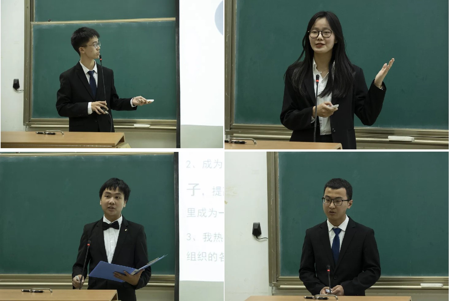 经过前期预审,学院最终筛选出21级9个,20级11个,19级6个共26名候选人参与答辩。候选人分别以PPT的形式从思想品德,学习成绩,社会实践等方面展现自己的综合实力。在有限的四分钟内,各位参辩者的介绍各有新意,以精心准备的答辩PPT作为切入点,条理清晰地陈述自己的评选优势。充分的准备是他们对于一切事情一丝不苟的证明。那一次次的鼓掌和一次次羡艳的悄声交流,现场严肃而又火热的气氛从侧面展示出答辩同学的表现优秀。