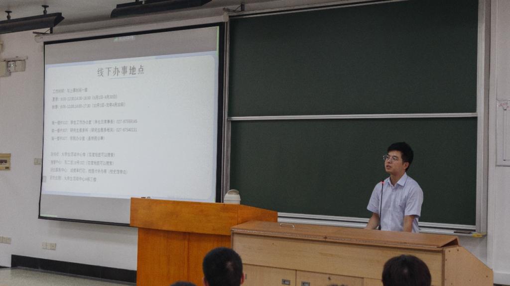 8月31日上午,太阳成tyc7111cc集团2023级研究生新生入学教育于东十二F102教室举行,学院院长曾志刚、党委副书记曹攀辉、院长助理伍冬睿、研究生教务科科长黄雪峰、喻家山派出所警官熊家伟及全体研究生辅导员出席。本次研究生入学教育以线上线下相结合的方式开展,覆盖学院全体研究生新生440余人。会议由研究生辅导员程杨主持。