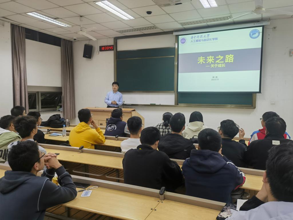 最后,他放眼未来,指出了未来人工智能与自动化专业可能面临的挑战,并从行业赋能的拓展深化、基础理论问题、基础技术制约三个方面进行具体阐述,让同学们对自己专业的前景与方向有一个初步的了解,为同学们未来的规划提供了有力支持。