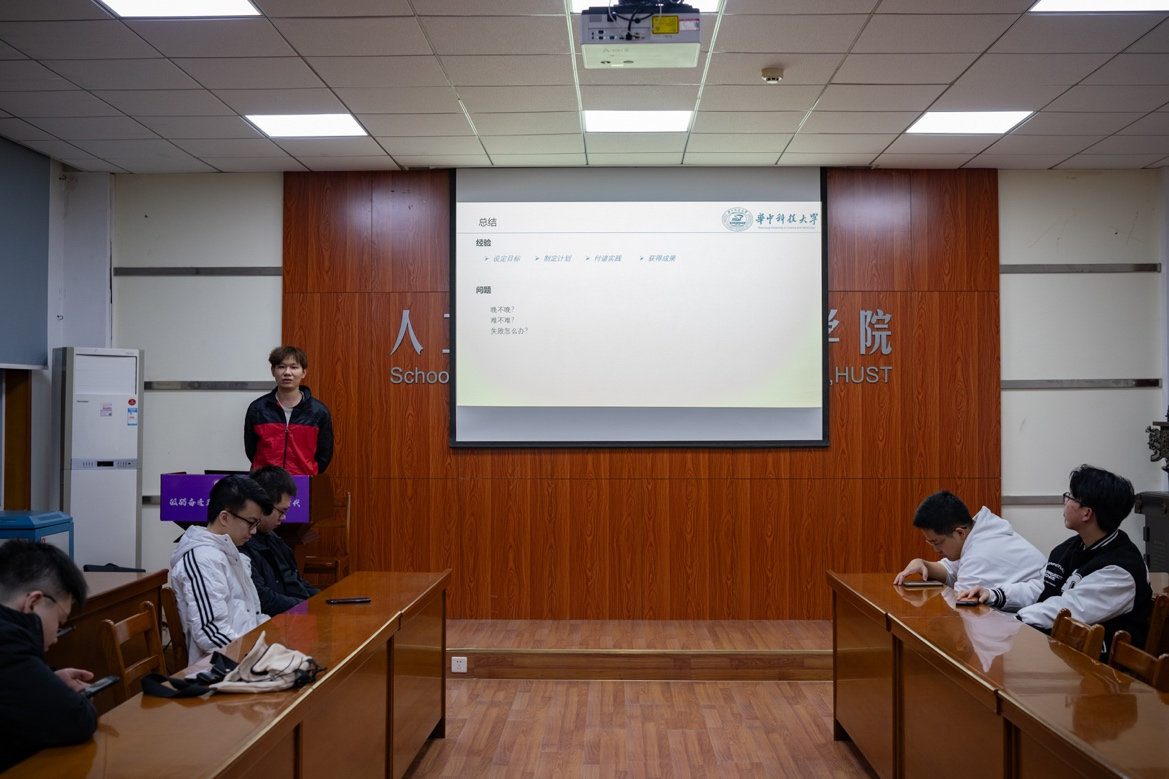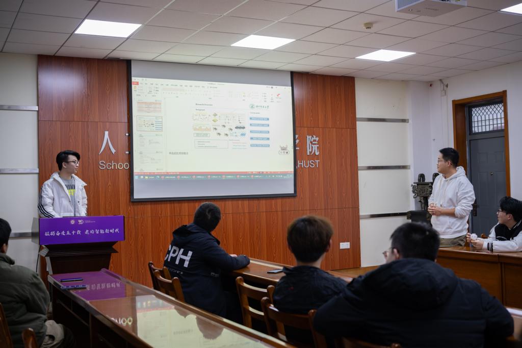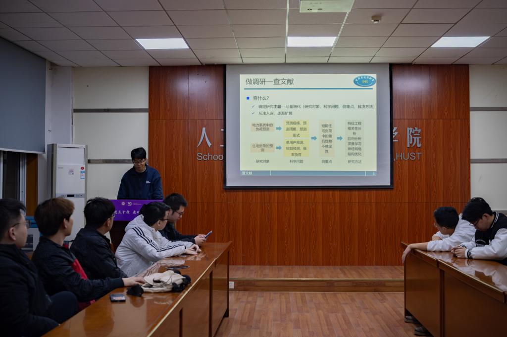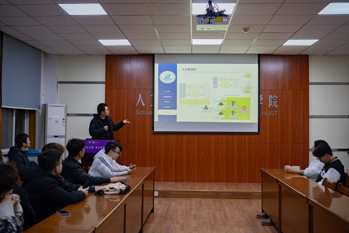 在分享环节,朱文博介绍了自身论文投稿和科技竞赛参赛经历,并从就业角度出发,对如何平衡好课程学习、找工作、科研进行了经验分享。关于人生如何规划,他总结了“设立初步目标à迷茫à对自身定位并确定新目标à前行并适当调整目标”的四步心得。对于想竞选国奖的同学,他建议应当详细了解相关评分指标,在平时积累的同时针对性去努力得到高分。
