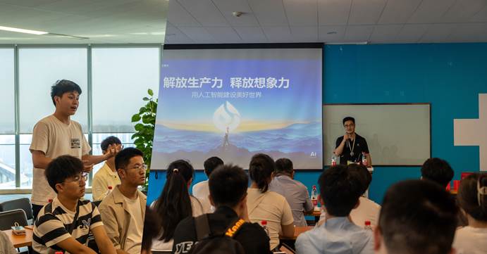 参观结束后,科大讯飞智慧医疗业务线研发总监黄发从人工智能的历史出发,详细介绍了科大讯飞在AI领域的强项,通过互动环节,生动展示了科大讯飞在语音识别、语音合成等方面的卓越实力,以及包括复杂场景OCR应用等AI产品的实际应用。紧接着,黄发总监细心解答了多位同学关于技术细节的提问。