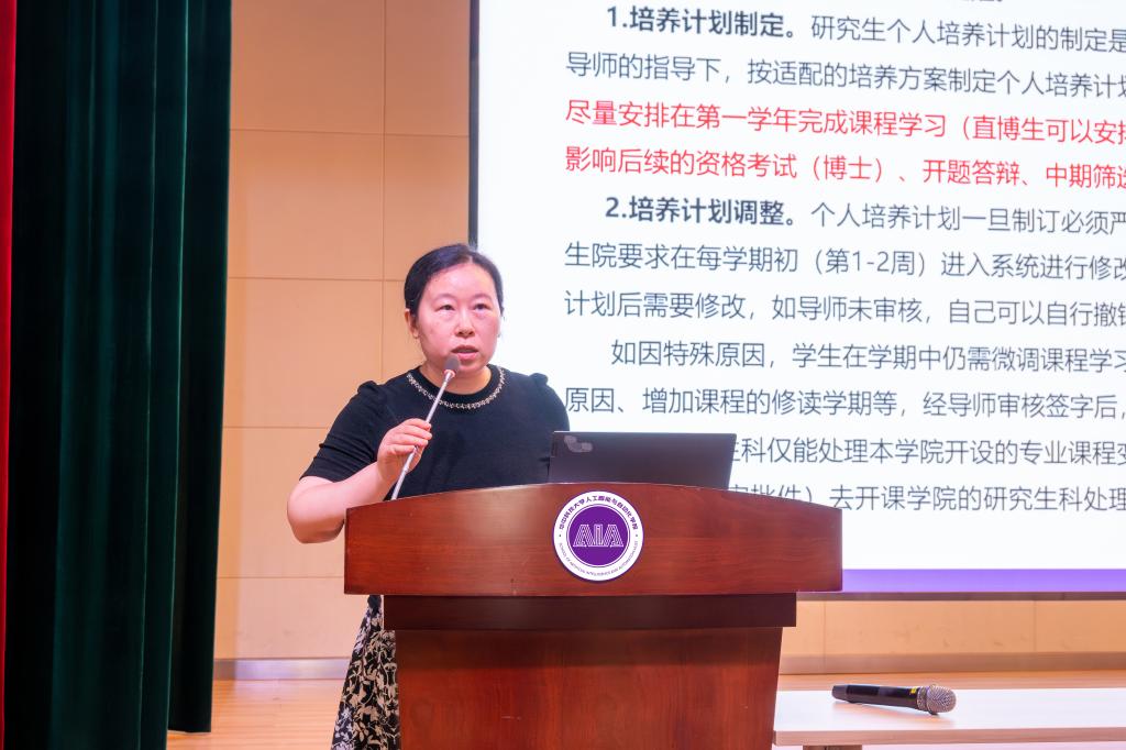 学院副院长颜露新围绕研究生培养核心环节展开讲解,从课程学习周期、学术能力积累、成果产出标准等方面,清晰阐述研究生阶段的基本要求;同时结合学科特色,强调科研创新与实践能力的培养重点,引导新生提前规划学业进度,主动与导师沟通研究方向,为后续科研工作打下基础。