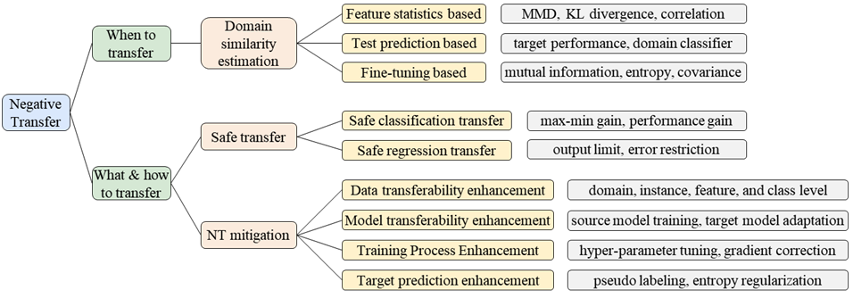 负迁移是迁移学习中一个长期存在且很具挑战性的问题。可靠的迁移学习需同时考虑3个问题:1)迁移什么?2)如何迁移?3)何时迁移?本文对近100种对抗负迁移的方法进行了分类和回顾: