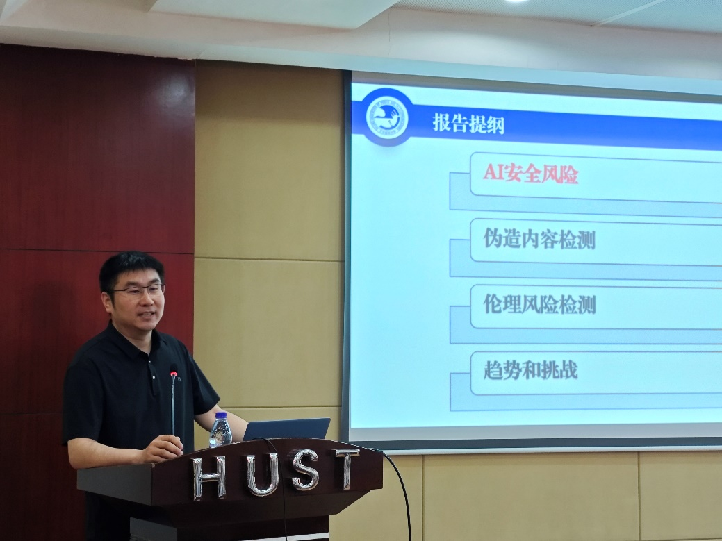 北京邮电大学何召锋教授作了题为“生成式人工智能内容安全与伦理风险检测”的学术报告,报告介绍了其在大模型伦理风险检测与治理、多模态风险检测等方面的工作,包括人脸反欺骗检测、通用图像伪造检测、视频伪造检测、虚假新闻检测以及价值判断模型构建等,以期为AIGC技术安全可控发展提供技术支撑,最后总结了该方向所面临的挑战。何教授的报告全面地分享了生成式人工智能安全技术,涉及图像、视频、文本等多个模态,引起了听众对人工智能安全可控发展的进一步思考。