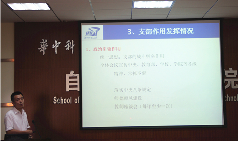 随后系统科学与工程系党支部书记刘振元老师汇报介绍了系统系党支部基层党组织建设情况,分别从党员基本情况、支部组织生活落实情况、支部作用发挥情况、党费收缴情况、党组织关系集中排查工作、经费场所保障、进一步加强教师党支部建设的意见建议七个方面进行了详细的介绍。系统系党支部紧密围绕中心工作设置支部工作方案,对学院的人才培养、学科建设以及科学研究等多方面做出了贡献。同时,系统系党支部除了积极参加学院的党章知识竞赛、学“习近平总书记讲话”演讲比赛、焦裕禄干部学院学习等活动,还开展了党群一对一结对联系、创办物流专业电子期刊《物华流芳》等一系列结合学科特点和具有示范作用的特色工作。