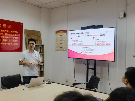 (通讯员:王文慧)习近平总书记指出,“人无精神则不立,国无精神则不强”。为进一步坚定我院学生学以致用,科技报国的理想信念。9月27日,我院博士2001党支部在南一楼中312开展“航天精神在传承——“问天”览星辰”学习活动,活动由博士2001党支部书记余甜甜主持,校红色理论学讲团讲师张东琪担任主讲,学生工作办公室主任梁浩伟参加。