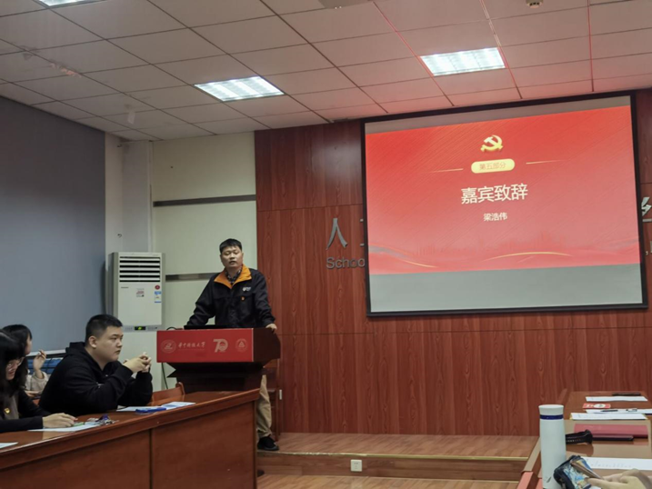大会最后,梁浩伟做嘉宾致辞。他首先对上届中心全体成员一年以来的辛苦付出表示感谢,并对党务中心在党建工作上取得的成绩表示肯定。随后,他对中心的工作提出要求,强调成员一方面要提升政治理论素养,鼓励将习近平新时代中国特色社会主义思想和党的二十大精神贯彻落实到学习工作中,另一方面要结合实际,将研究生需求融入到工作中,做好研究生党员教育工作,坚定研究生党员的理想和信念。