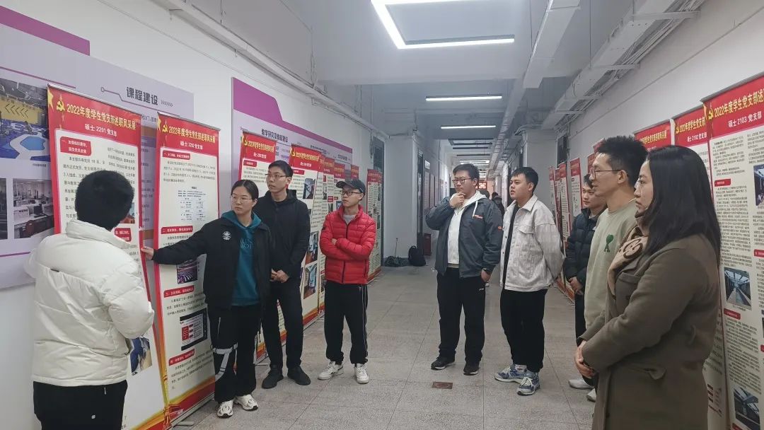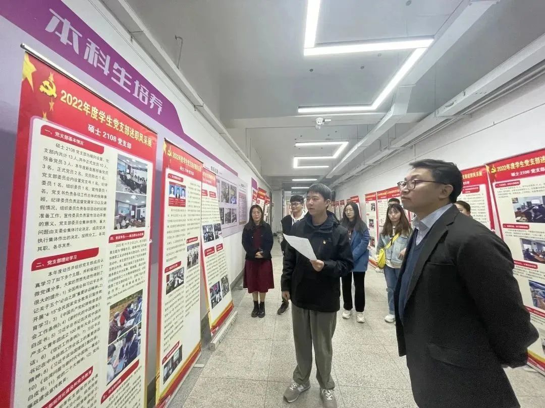 学院46个学生党支部分为2组进行述职。在精心制作的支部工作海报展架前,各支部书记从支部基本情况、理论学习、支部建设、先锋模范、亮点举措、工作不足等方面对支部2022年的工作进行总结汇报。