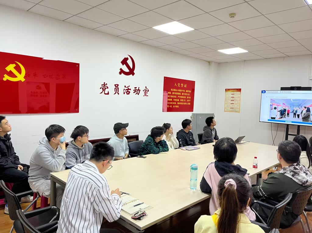 向鑫宇代表学院研究生党务中心介绍一年来的工作成效。他介绍了党务中心的组织架构以及日常开展的党务基础工作,同时着重介绍了党史知识竞赛、支部书记述职海报展等特色活动,强调党务中心的工作进一步激发了研究生向党组织靠拢的积极性,并为研究生支部工作提供了指导。