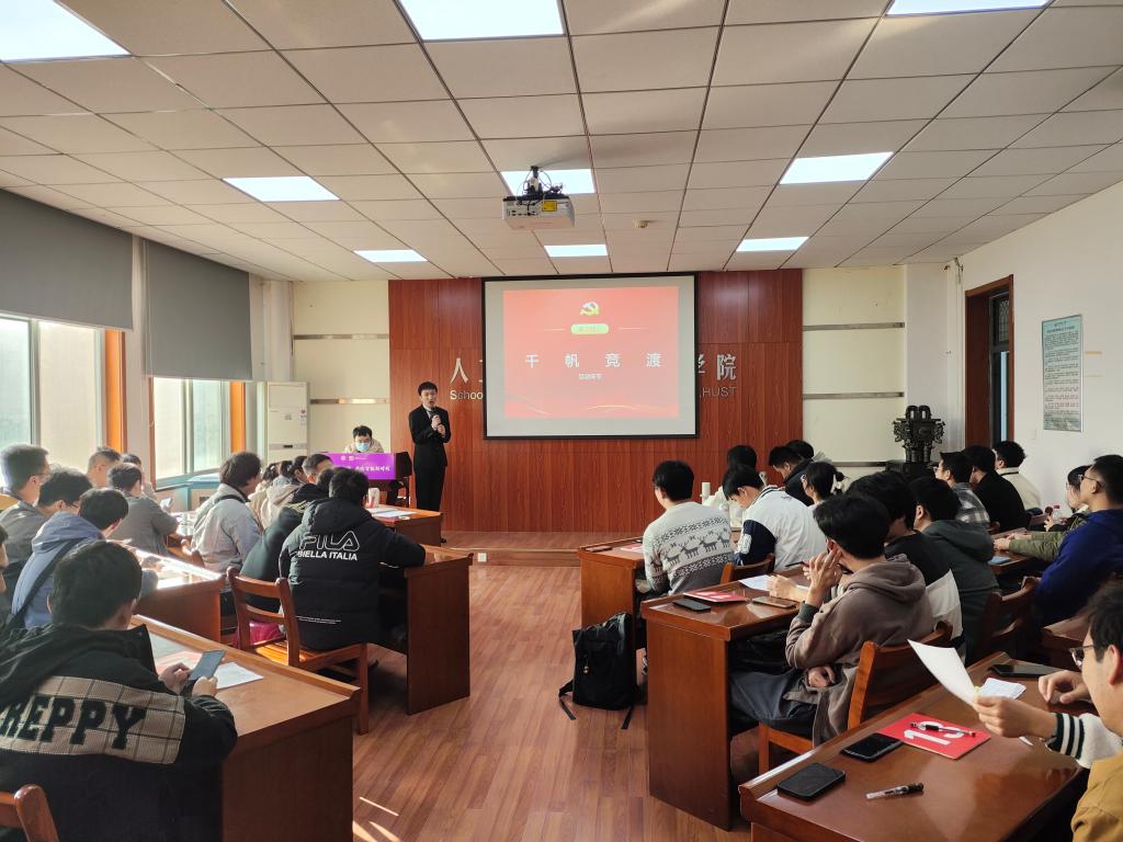 主持人宣布活动开始后,各个参赛队伍代表依次介绍本队伍成员并发出参赛宣言。队伍介绍后由主持人介绍比赛规则,比赛分为“百舸争流”笔试环节和“千帆竞渡”互动环节,通过累积制计分成绩决出胜负,争夺一、二、三等奖,获得一等奖与二等奖的队伍将代表学院参加校级比赛。