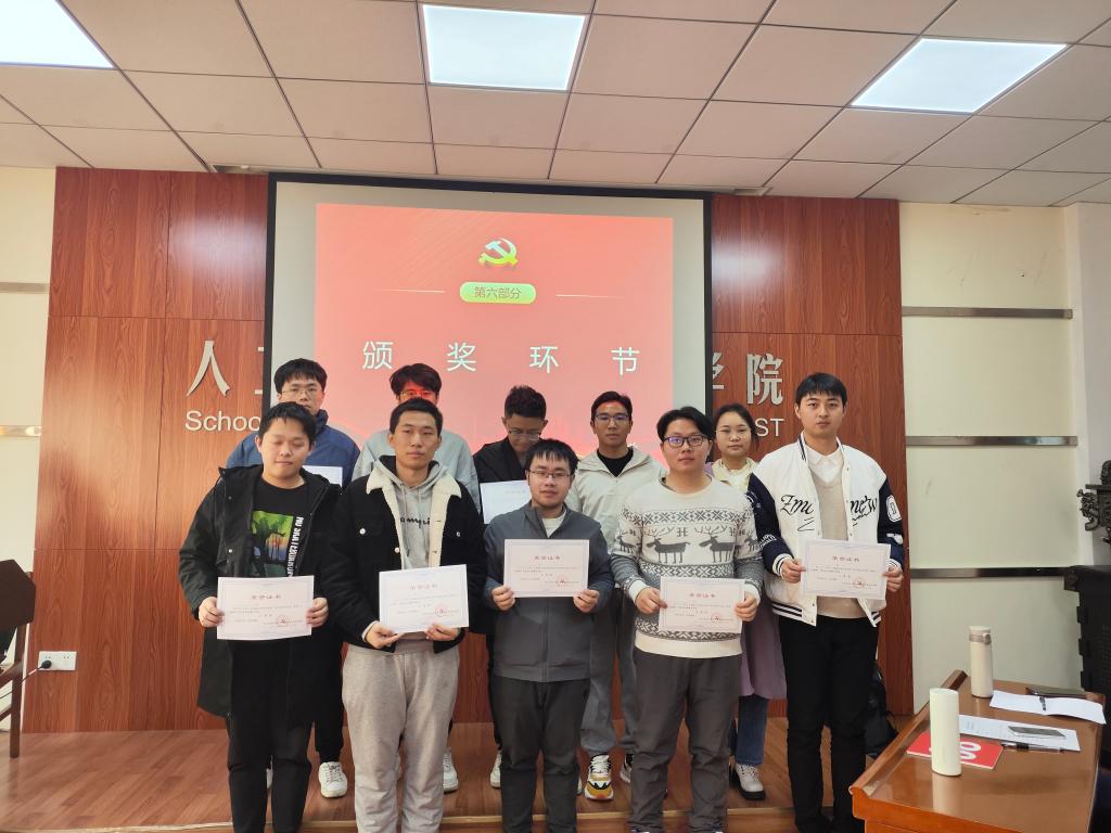 经过两轮精彩的角逐,2023级硕士生八班党支部队伍获得比赛一等奖,2023级硕士生三班党支部队伍、2023级硕士生十班党支部队伍获得二等奖,2023级硕士生五班党支部队伍、2023级硕士生二班党支部队伍、2023级博士生二班党支部队伍获得三等奖。曹攀辉、王泽楠和刘典辉分别为获奖队伍颁发了荣誉证书。