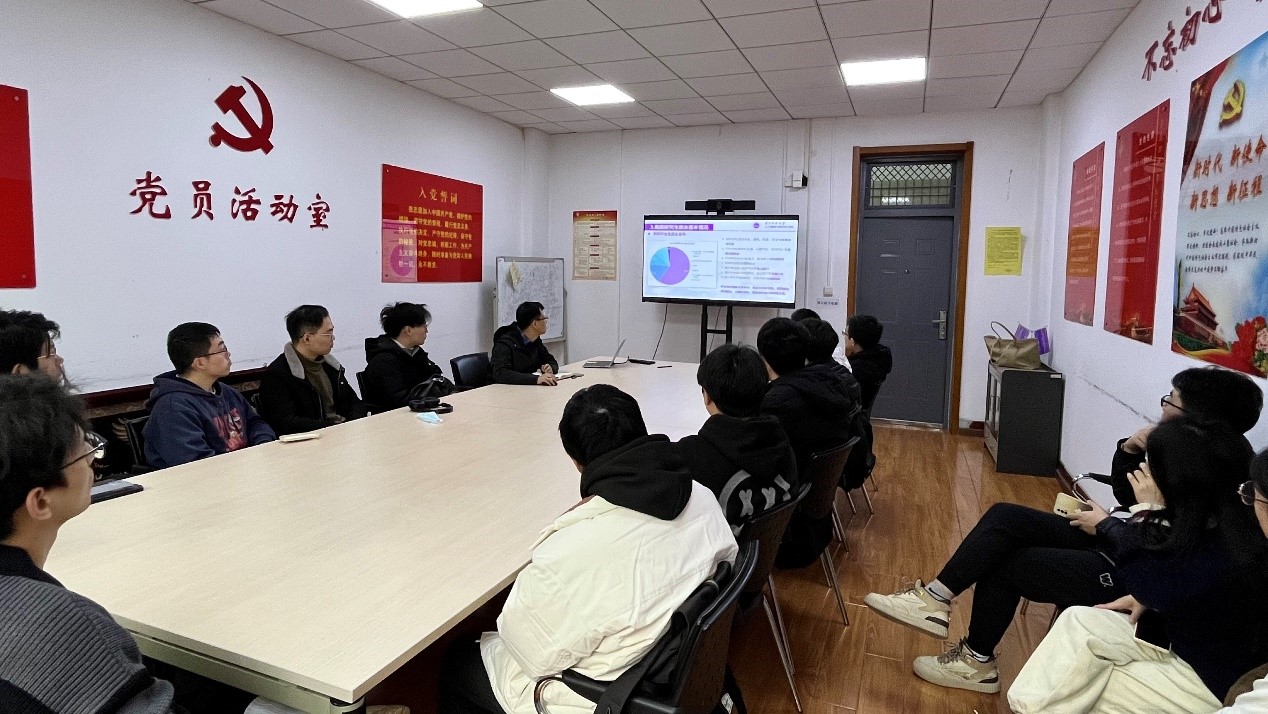 专题学习结束后,为学习贯彻习近平总书记关于就业工作的重要指示精神,帮助同学们树立积极的就业观,曹攀辉以“敢想敢为敢担当,善作善成有理想”为主题,介绍了学院毕业生就业现状、我校毕业生就业整体情况以及我院研究生就业基本情况。他指出学院总体就业情况是高质量的、去向是多元化的,建议同学们认清自我和社会需求,根据自己的能力和兴趣,选择合适自己的赛道,希望大家将青春“小我”融入强国“大我”,仰望星空、脚踏实地。随后,支部党员围绕就业的话题展开了热烈的讨论,曹攀辉针对大家目前存在的困惑进行了解答和指导,缓解了大家在就业期焦虑的情绪。