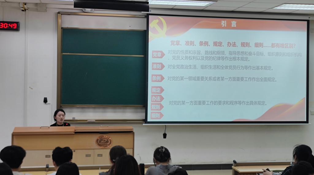 本次发展对象培训班共有四讲内容。第一讲由范雯宇老师带领大家学习领会习近平总书记关于党章的重要论述。她以学习历届党章的制定及修正为出发点,着重对二十大党章的新一次修正的伟大意义作了详细阐释,通过对党章内容、科学内涵、精神实质等方面的剖析详细地进行了讲解,让发展对象们理论知识上有很多收获,并鼓励大家在学院课后要经常性学习党章。